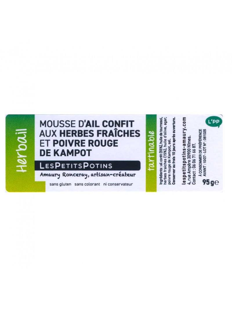 Herbail : Mousse d'ail confit aux herbes fraîches et poivre rouge de Kampot